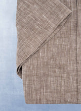From our Portugal Fabrics Capsule, we introduce our super-soft 100% Linen Short Sleeve masterpiece, the Alexander in Short Sleeve Brown Linen, inspired by the dreamy pastels and lifestyle of Portofino. Featuring a dreamy earthy Taupe-y color that matches anything earth-toned, and crafted from the finest pure linens, and woven by master craftsmen in Portugal. The subtle button-thread contrasts lend a thoughtful and elegant touch, while the precise positioning of the second button is transformative. And the hem length—just right to wear tucked in or untucked. Extremely versatile, this shirt can be paired with ease with chinos, denims or dress pants. Or even with your favorite pair of worn-in Bermuda shorts. Also featuring an elegant and subtle breast pocket and short sleeves with the perfect shape—neither wide nor constraining. Simply perfect and confident. In a trim fit, calibrated to accentuate a lean, athletic body type.