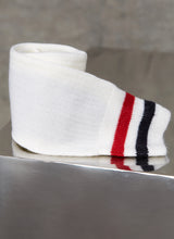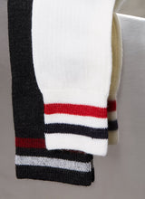 Our timeless favorite. A beautiful shade of heather taupe, combined with accents of ivory and navy. Ribbed construction and Spandex for maximum comfort.
