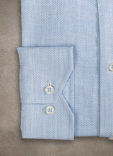 The washed blue color and pin-head pattern of the Alexander in "Mille Punte" Pale Blue Linen Shirt are evocative of the sun-bleached deco colors of the buildings that dot the harbor in Portofino. Made from super-soft linen blended fabric, woven in Austria. The buttons are stitched with a matching blue thread, a subtle, yet elegant detail. Pair with ease with light colored chinos or dress pants, for a studied nonchalance--or even with your favorite pair of worn-in Bermuda shorts.