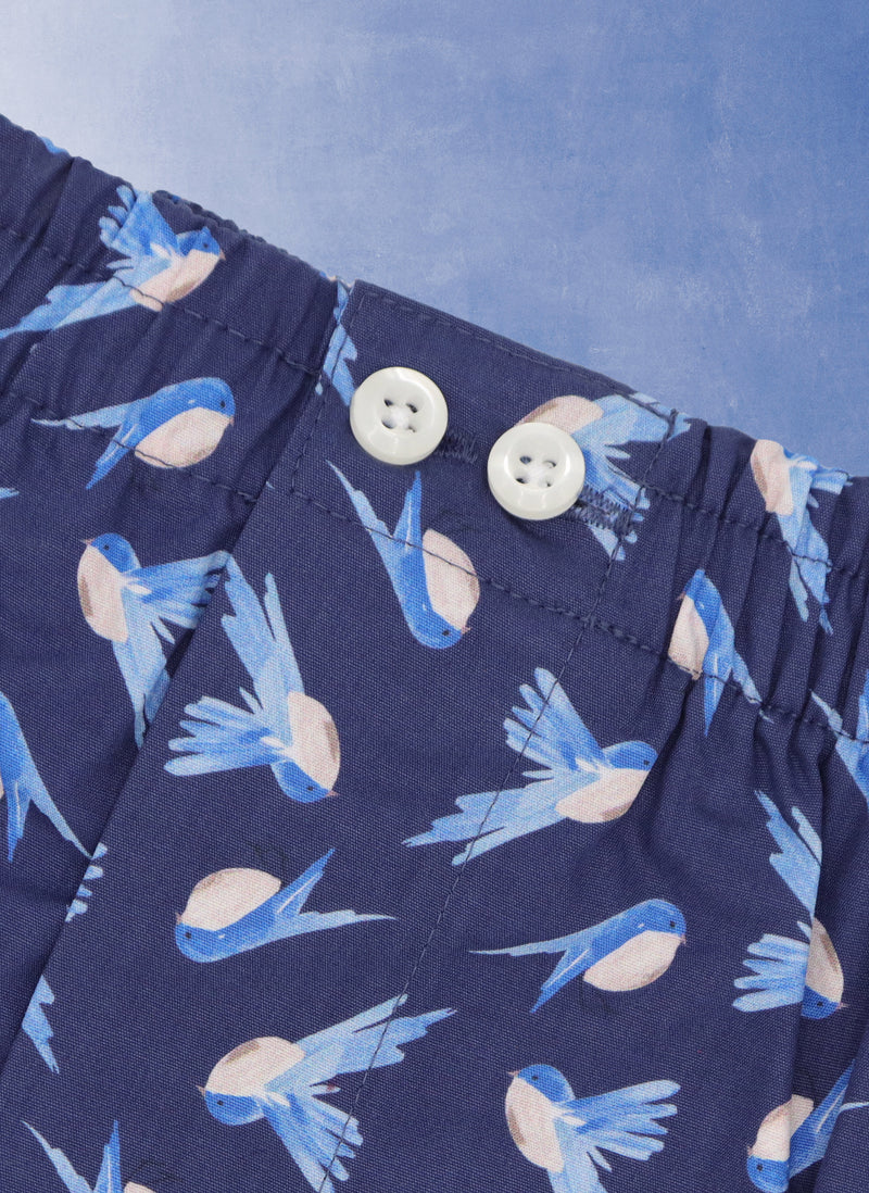 Crafted from our super soft Navy Bird cotton shirting fabric.