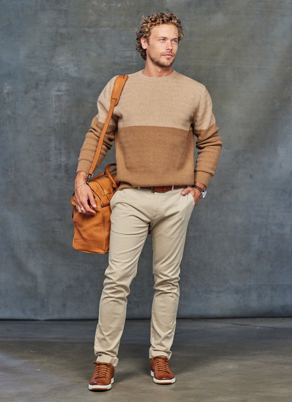 Men's Torino Italian Extra Fine Merino Wool Crew Neck Sweater in Cinna