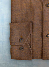 Our Alexander Sport Shirt in Textured Brown is crafted from a dreamy and highly upscale fabric, woven for us in Austria. Made of pure cotton, with a super-soft cashmere-y hand, the result is a dreamy, feathery touch to the skin. The fabric sports a sophisticated and subtle texture and a hint of iridescence with hints of orange, exuding style and pure confidence--the perfect way to welcome-in fall. The carefully selected Dark Brown buttons and burnt-orange contrast thread augments this upscale and enduring look. Perfectly with neutrals (Beiges, Tans, Khakis, and light-colored Denims).