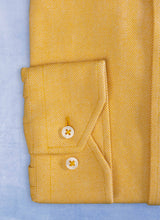 Our Alexander Sport Shirt in Solid Yellow Herringbone is crafted from a dreamy and highly upscale fabric, woven for us in Austria. Crafted from pure cotton, with a super-soft cashmere-y hand, the result is a dreamy, feathery touch. It is luxurious and plush, and evokes the feeling of wearing a cloud. The combination of the beautiful bold yellow, together with the subtle herringbone texture, offers a bold, yet subtle, sophisticated look. Intentional details, such as the dye-to-match contrast threads, complete this highly elevated look. Works perfectly with Denims and winter whites.