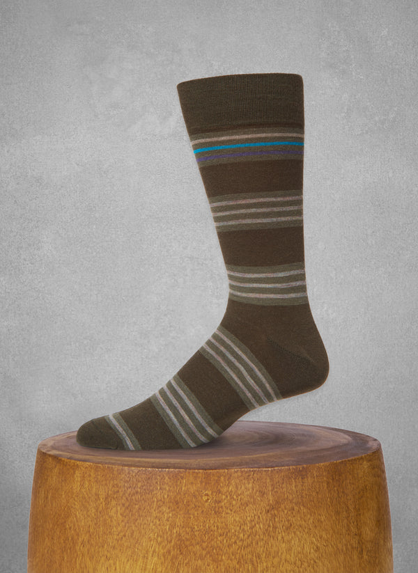 Merino Wool Oxford Mille Stripe Sock in Olive