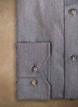 Our Alexander Sport Shirt in Solid Heather Brown is crafted from a highly upscale, dense-weave fabric, woven for us in Austria. The fabric sports a sophisticated and subtle iridescence with underlying hints of burnt orange and tan. This upscale look is augmented further by the carefully selected Tortoise-Brown colored buttons and burnt-orange contrast thread. Perfect with all neutrals. Wear with dark pants for a stark, evening look, with or without a sportcoat, or with light colors (even whites) for daytime elegance. Can also be dressed up with a sportcoat.