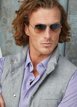 A truly luxurious reinterpretation of the classic knit shirt, the Alexander in Periwinkle Knit can just as easily be worn under a suit with tie for a serious business meeting or a casual weekend. The color is a rich, almost iridescent hue with a base of blues and hints of subtle purple. The spread collar, subtle purple color and mitered barrel cuffs speak to a serious shirt, while the Coolmax ® technology adds every day comfort, ensuring that the knit fabric is breathable and moisture wicking. The Alexander is the trimmest of all our fits, calibrated to accentuate a lean, athletic body type.