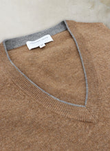 Men's Melbourne Contrast V-Neck Extra-Fine Pure Merino Wool Sweater in Tabacco