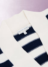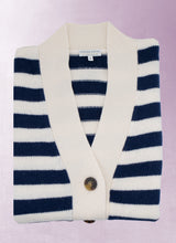 Indulge in the ultimate luxury and comfort with our Women's Cashmere Stripe Cardigan Sweater in Ivory. Meticulously handcrafted using 6 luxurious plies of our signature yarn, sourced from the finest cashmere in Inner Mongolia and Extra Fine Merino Wool from Australia, this impeccably designed piece exudes exclusivity and sophistication.
