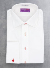 The Maxwell Formal in White is the epitome of sartorial elegance for the most distinguished events. Its spread collar, French cuffs, and signature fitted silhouette provide a timelessly chic look, while the included contrasting red silk knot cufflinks add an opulent touch. A garment designed to flatter a variety of body types, the Maxwell is a standout standout choice for a truly special occasion.