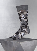 A spin on classic camo, our Lurex Cammo in Charcoal sock can add style to jeans or a dash of fun to a formal look.