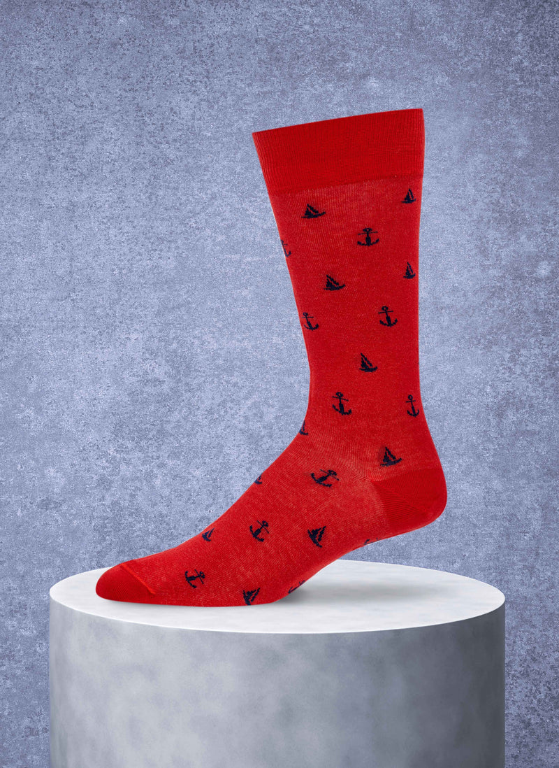 Sailboats and Anchor Cotton Sock in Red