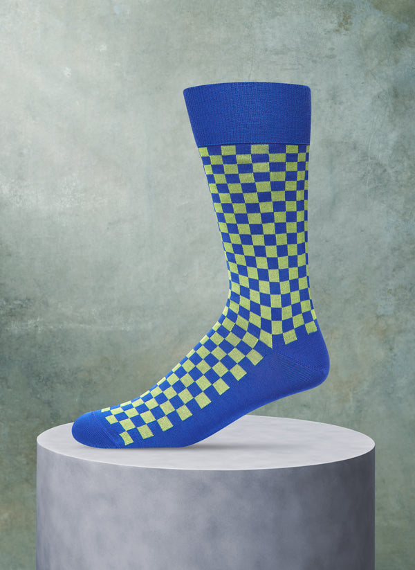 Circle Dot Sock in Navy with Lime Green Heel/Toe