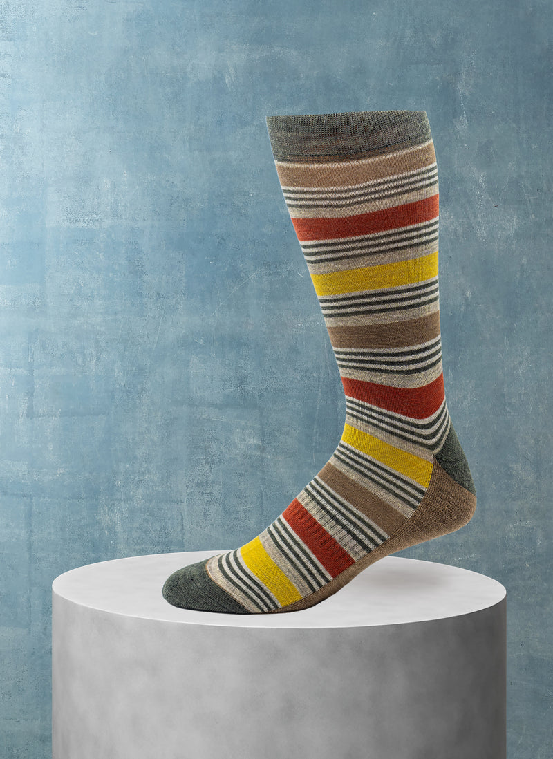 Merino Wool Multi Stripe Cushion Foot Sock in Taupe