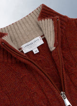 Men's Chanteclair Italian Extra Fine Merino Wool Quarter Zip Cable Sweater in Cinna