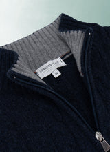 Men's Chanteclair Italian Extra Fine Merino Wool Quarter Zip Cable Sweater in Navy