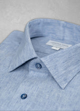 The Alexander in Blue Fade Mélange Linen Shirt evokes the casual Italian live/work lifestyle. Wear as you would a white shirt--can pair with tans, whites, or earth tones. Made from a linen/poly blend, the result is a supersoft touch. With custom dark blue “ombre” buttons that add a unique and custom touch to the overall look. Can be dressed up under a sport jacket, or simply worn untucked, for a more casual, after-hours look. The Alexander is the trimmest of all our fits, calibrated to accentuate a lean, athletic body type.