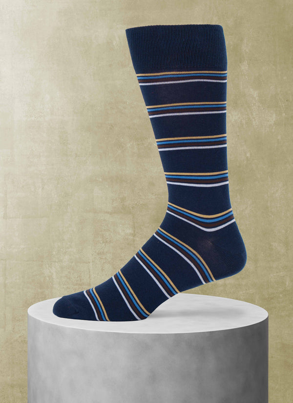 Big and Tall Merino Wool Multi Stripe Sock in Navy