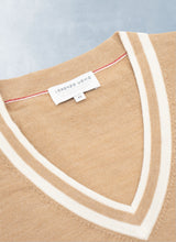 Men's Dolce Vita Double Stripe V-Neck Ultrafine Merino Wool Sweater in Taupe