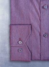 Our Alexander Sport Shirt in Solid Heather Purple is crafted from a highly upscale, dense-weave fabric, woven for us in Austria. The fabric sports a sophisticated and subtle iridescence with underlying hints of bordeaux and plum. The carefully selected charcoal-colored buttons and plum contrast thread augment this upscale and timeless look. Perfect with all neutrals. Wear with dark pants (Charcoal, Navy, or Black) pants for a stark, evening look, with or without a sportcoat, or with light colors (even whites) for daytime elegance.