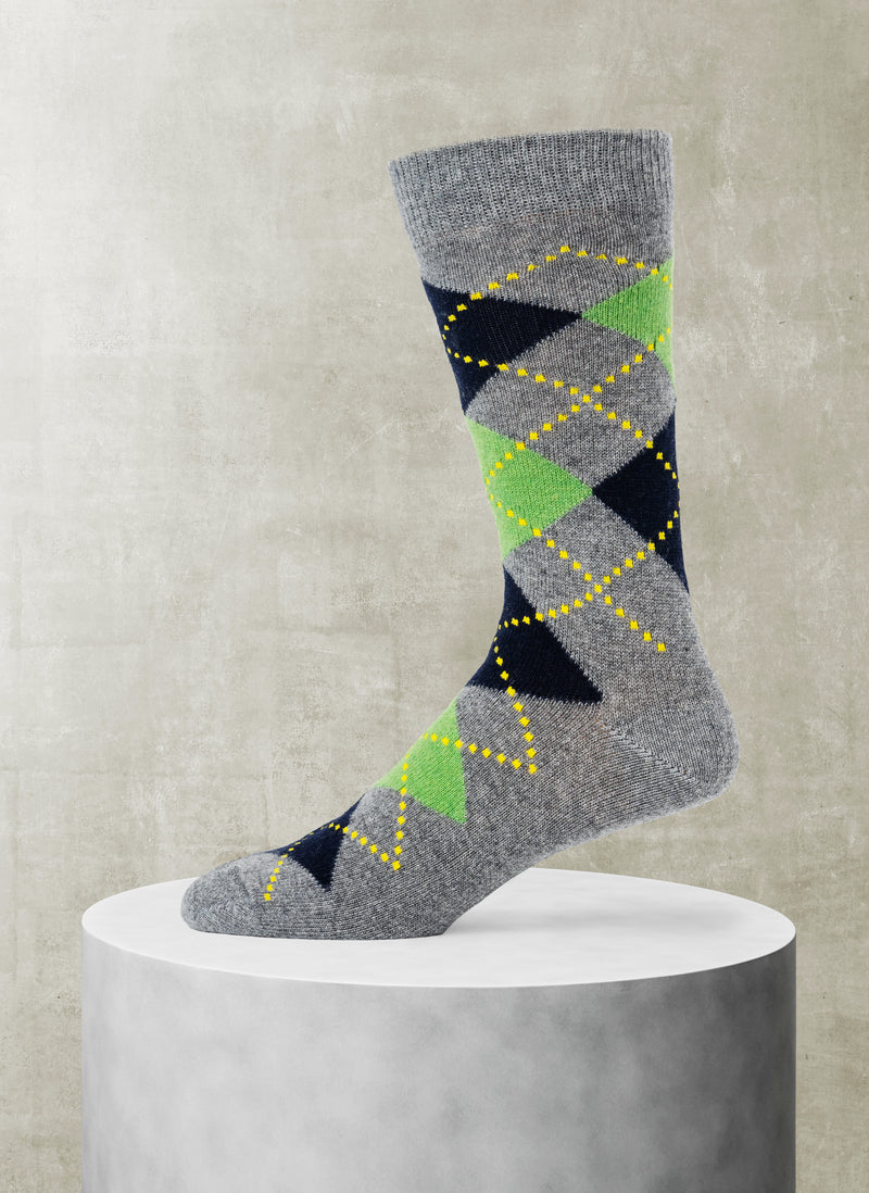 Cashmere Blend Argyle Sock in Grey with Mint and Navy