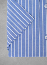 From our Portugal Fabrics Capsule, we introduce our Short Sleeve Seersucker masterpiece, from 100% cotton, the super-soft Alexander in Short Sleeve French Blue and White Stripe seersucker, inspired by the casual nautical lifestyle of Portofino. In a universal blue color that pairs with practically any color, and crafted from the finest pure cottons, woven by master craftsmen in Portugal. The subtle button-thread contrasts lend a thoughtful and elegant touch, while the precise positioning of the second button is transformative. And the hem length—just right to wear tucked in or untucked. Extremely versatile, this shirt can be paired with ease with chinos, denims or dress pants. Or even with your favorite pair of worn-in Bermuda shorts. Also featuring an elegant and subtle breast pocket and short sleeves with the perfect shape—neither wide nor constraining. Simply perfect and confident. In a trim fit, calibrated to accentuate a lean, athletic body type.