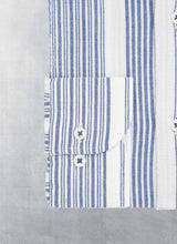 From our Portugal Fabrics Capsule, we introduce our upscale seersucker shirt, the super soft Alexander in White and Blue Stripe, with colors evocative of the playfulness and nautical splendor of the Mediterranean. In an elegant placed stripe combo, crafted from the finest pure cottons, and woven by master craftsmen in Portugal, and fabulous with anything blue or white. The subtle button-thread contrasts lend a thoughtful and elegant touch, while the precise positioning of the second button is transformative. And the hem length—just right to wear tucked in or untucked. Extremely versatile, this shirt can be paired with ease with chinos, denims or dress pants. In a trim fit, calibrated to accentuate a lean, athletic body type.