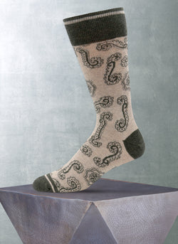 Bandana Paisley Cotton Sock in Taupe and Olive