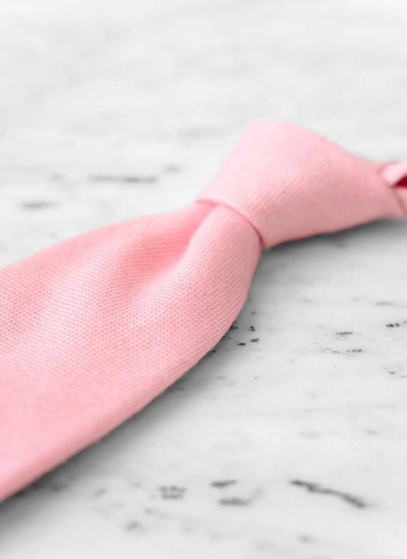 Our One-of-a Kind Men's Pure Italian Cashmere Tie in Pink. Exclusively crafted from 100% cashmere by our expert Italian artisans, this tie offers a modern-yet-classic silhouette and exudes a total power fashion statement.  Works incredibly with anything “tan”, and is an absolute work of art: 3 folds, hand-rolled edges, and impeccable Italian craftsmanship.