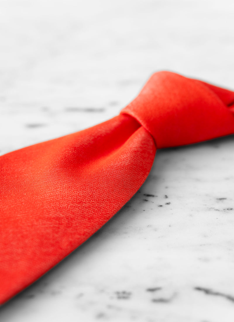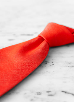A bold power statement, created in an unusual scarlet red mélange color. Bold and sophisticated, it is a must-have for the neutral-colored outfit. Created in a magnificent blend of Silk and Cotton, it is both complex in its simplicity, and highly fashionable. Knot with a ½ Windsor knot, and achieve the perfect dimple. Featuring 3 folds, hand-rolled edges, and expertly-crafted details from our generational artisans in Italy.