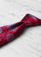 Inspired by the crimson colors of classic beaux-arts drawing rooms of Paris, we bring you this artfully patterned silk woven tie. Meticulously crafted with 3 folds and hand-rolled edges, the woven fabric highlights the subtle underlying motifs. Works perfectly dark browns, navies, and dark-colored neutrals. Honed in the perfect weight to achieve the perfect half-Windsor dimple. From pure silk, crafted by our expert artisans in Italy.
