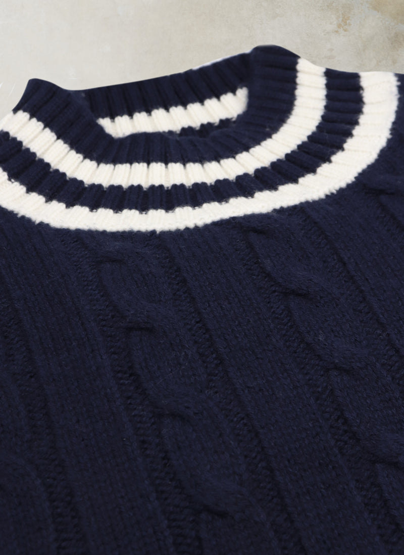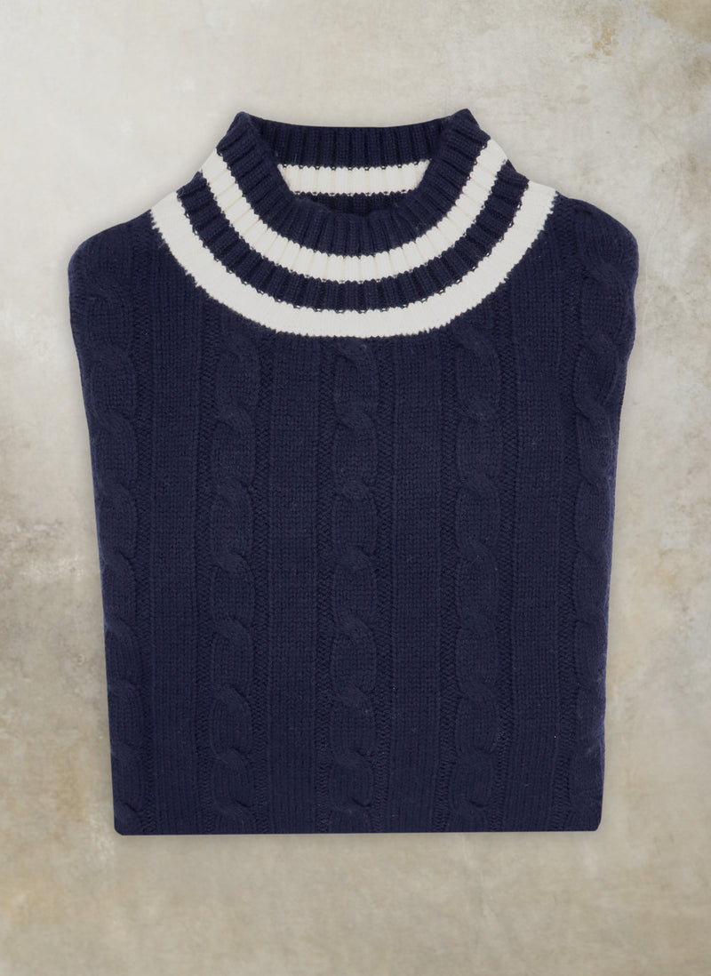 Men's Oslo Cashmere Mock-Neck Cable Sweater in Navy
