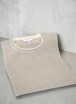 Men's Otranto Italian Piqué Textured Crew Sweater in Taupe