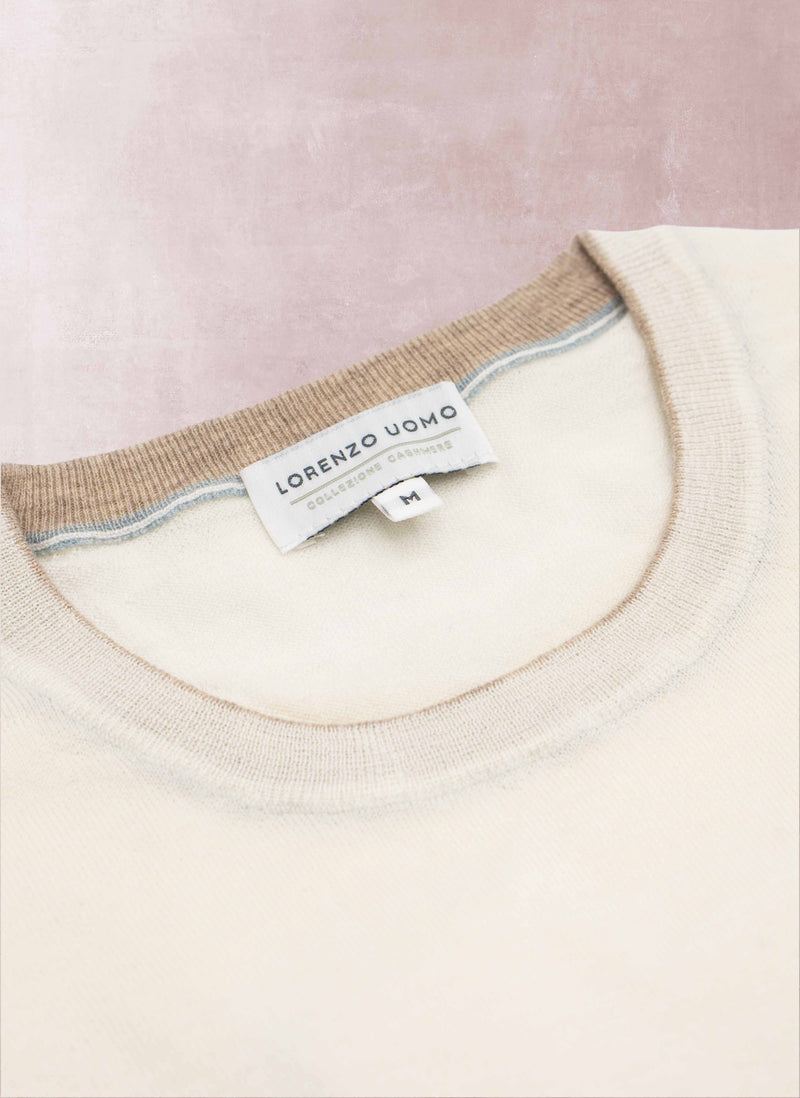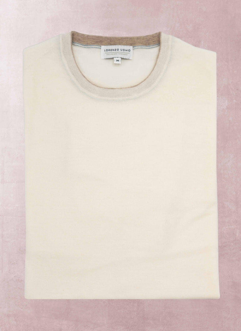 Men's St. Maarten Featherweight Crew Neck Cashmere Sweater in Ivory