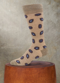 Merino Wool Oval Medalion Oxford Sock in Taupe