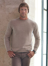 Featuring our Men's Tollegno Merino Wool Crew Neck Sweater in Taupe Mélange