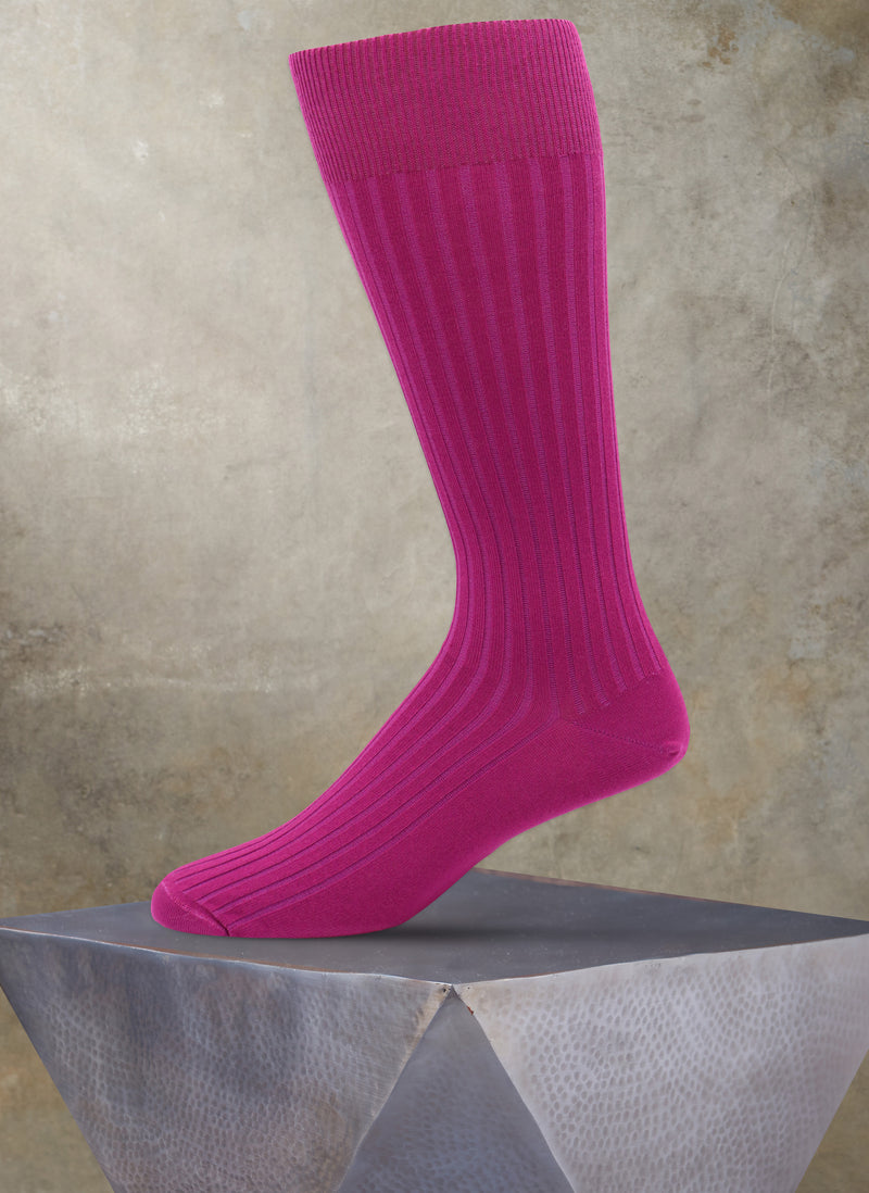 Our Short Ribbed Egyptian Cotton sock has a unique, sartorial 5x3 rib construction, which results in truly elegant contours when worn. The base yarn is of extra-long staple raw yarn, which is extraordinarily luxurious. The ultimate sock to wear in a boardroom setting. Made in Italy.