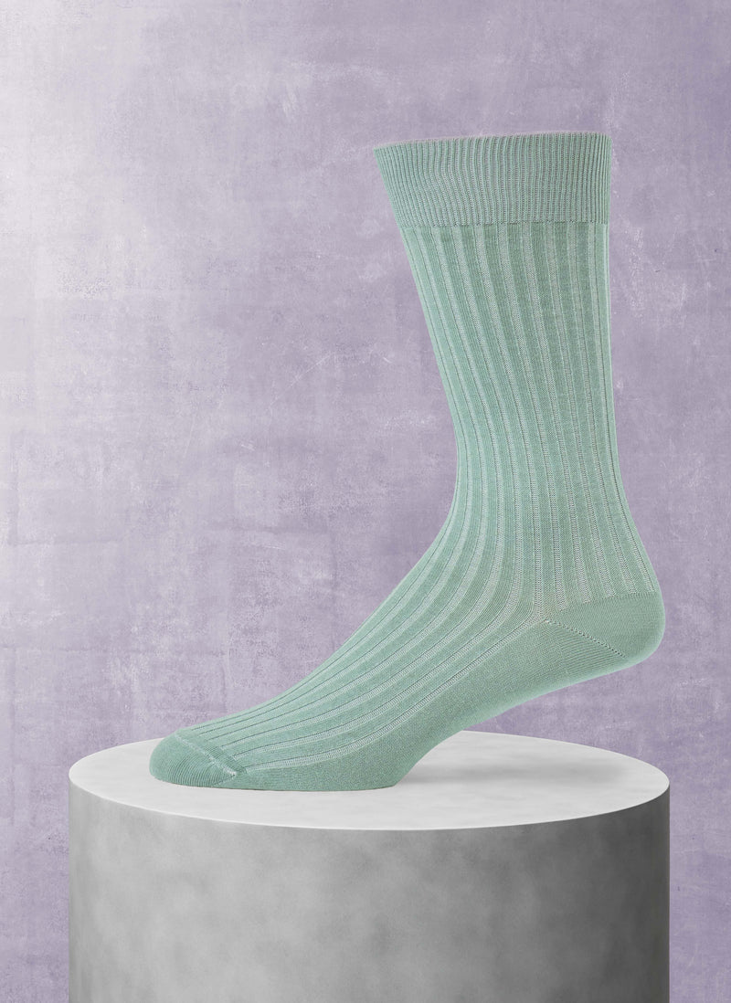 Our Short Ribbed Egyptian Cotton sock has a unique, sartorial 5x3 rib construction, which results in truly elegant contours when worn. The base yarn is of extra-long staple raw yarn, which is extraordinarily luxurious. The ultimate sock to wear in a boardroom setting. Made in Italy.