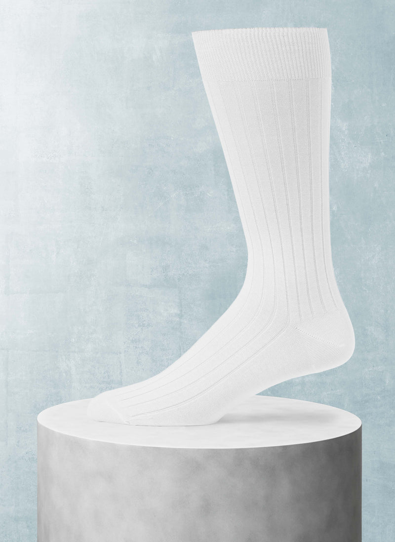 Our Short Ribbed Egyptian Cotton sock has a unique, sartorial 5x3 rib construction, which results in truly elegant contours when worn. The base yarn is of extra-long staple raw yarn, which is extraordinarily luxurious. The ultimate sock to wear in a boardroom setting. Made in Italy.