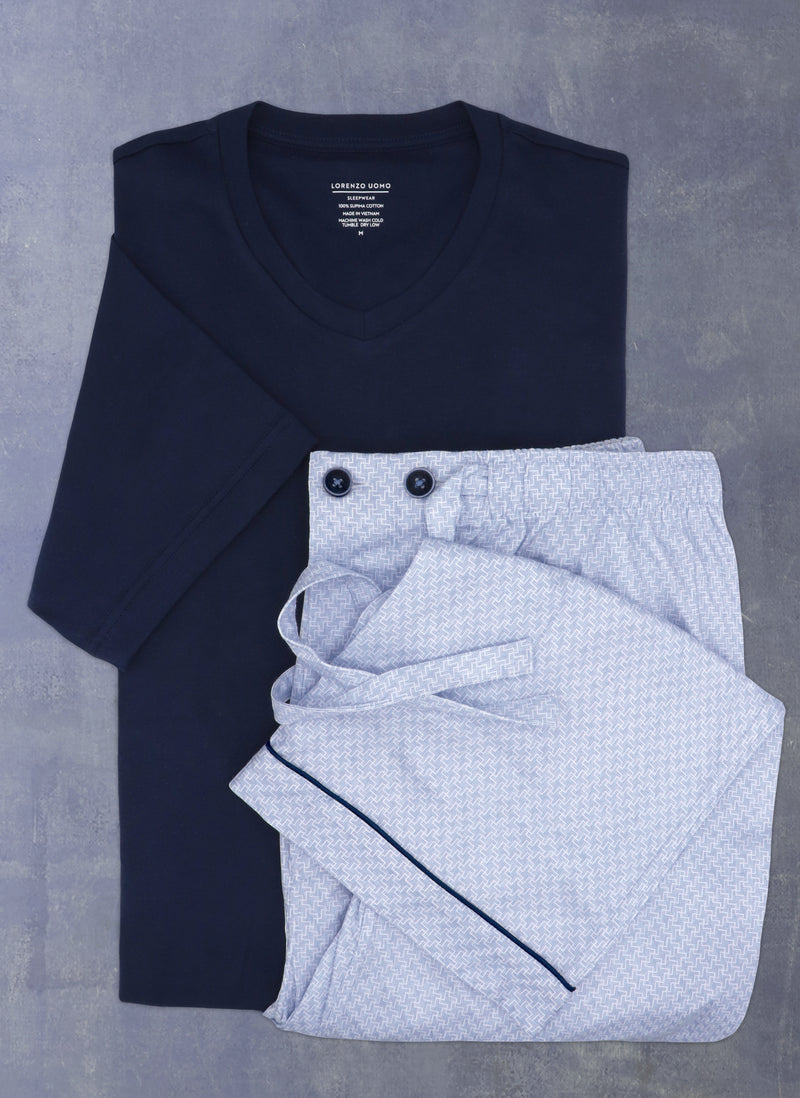 The Perfect Men's Knit Pajama Set in Light Blue Print
